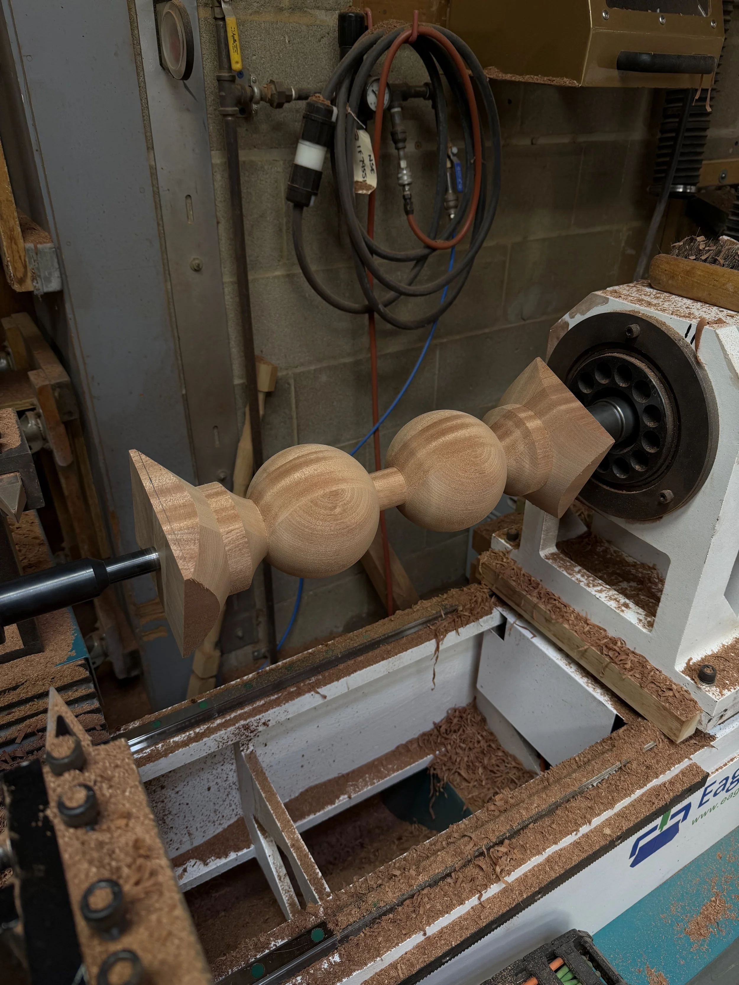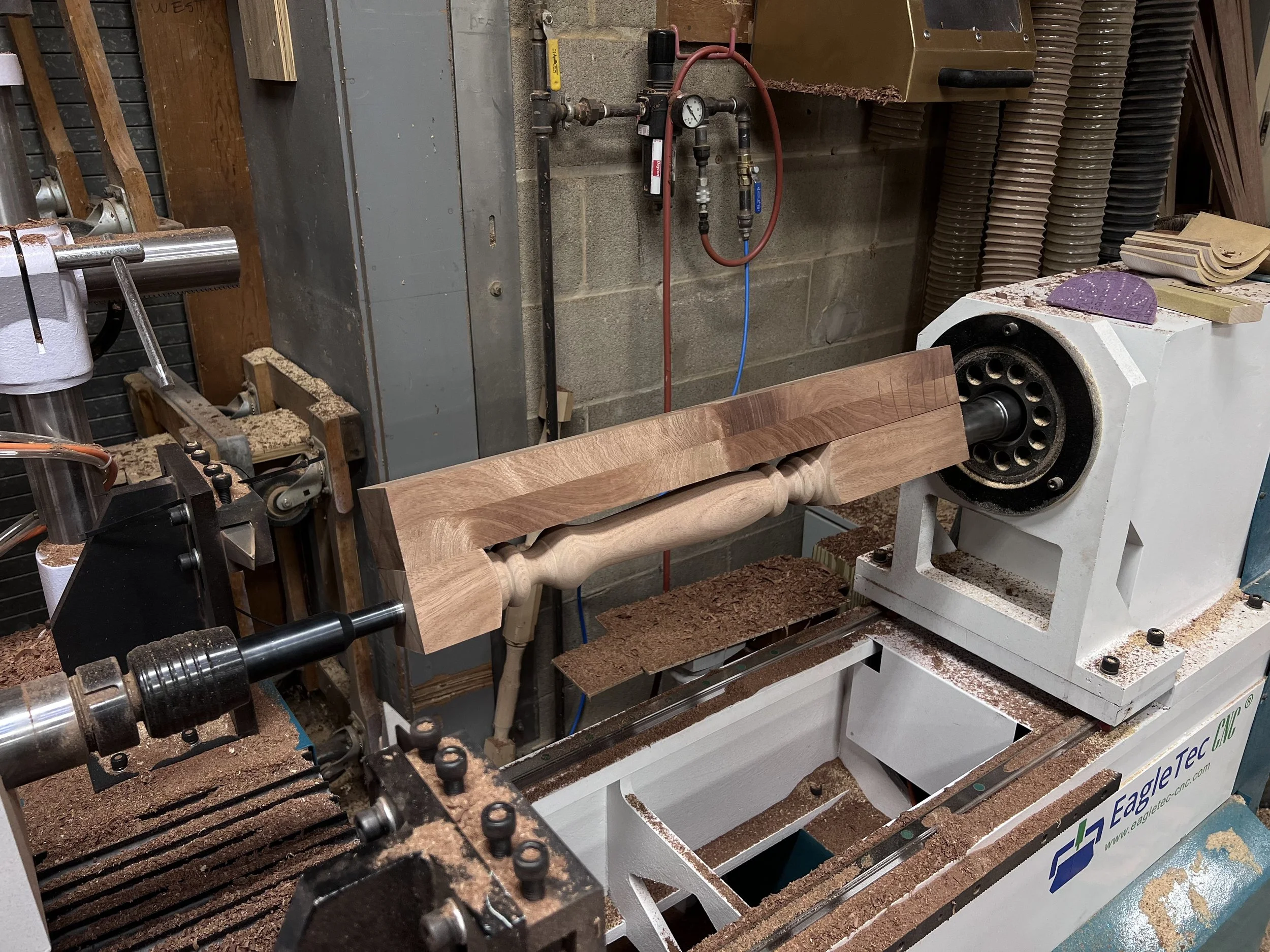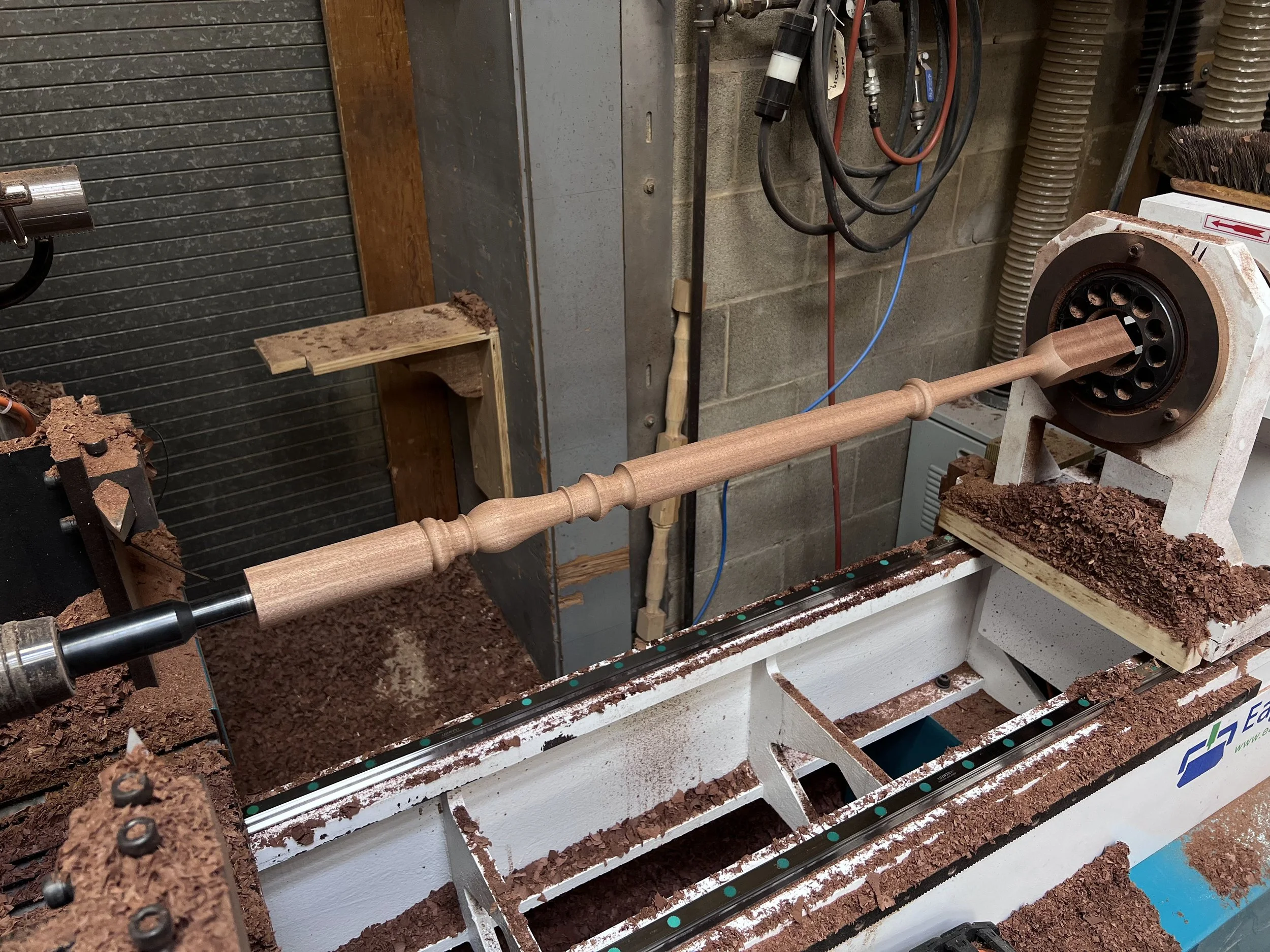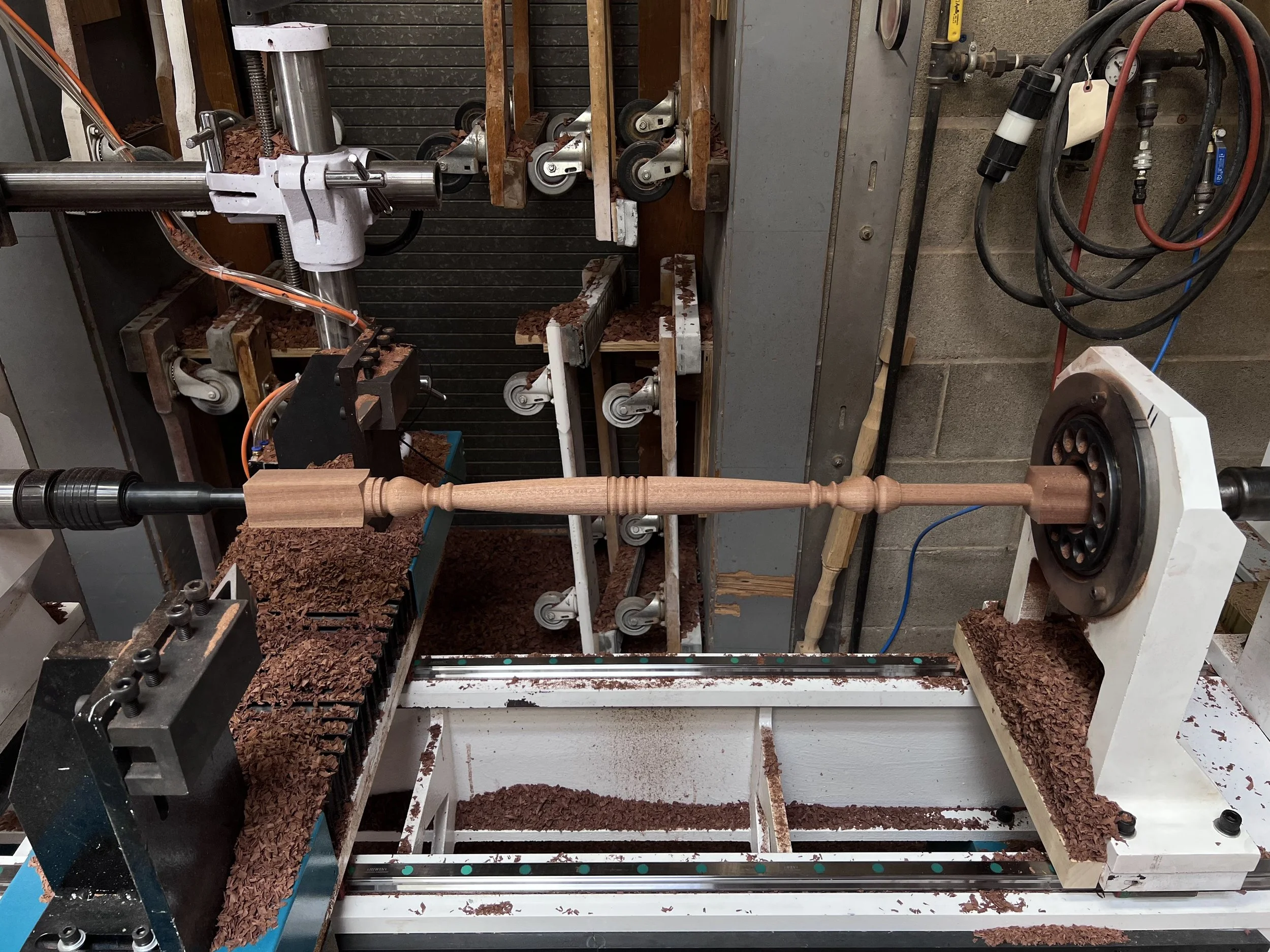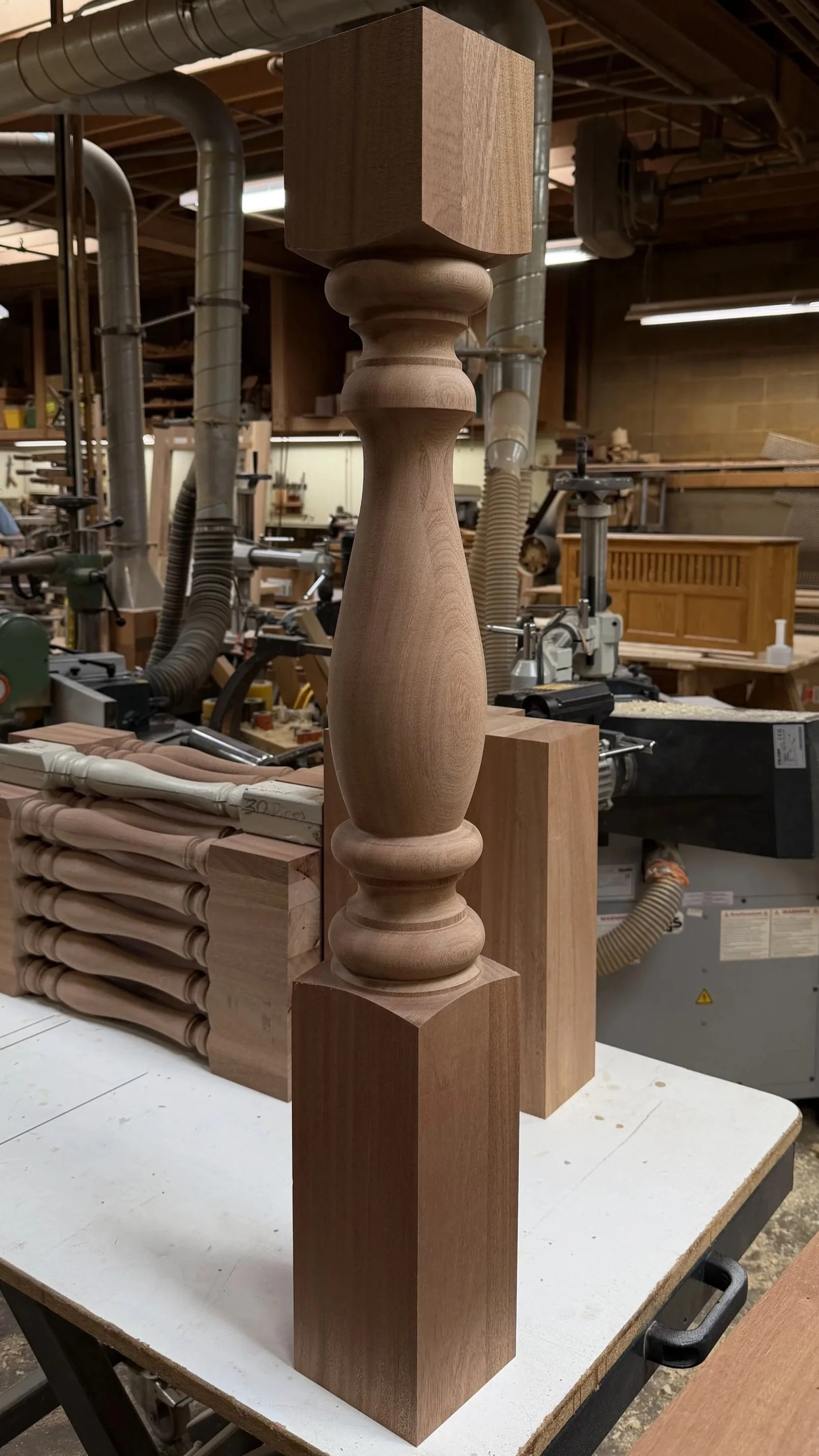 Our CNC lathe can create custom spindles, newel posts, column bases, & caps as well as many more designs.